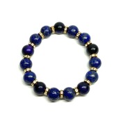 こちらは、ラピスラズリとパープルタイガーアイを組み合わせたパワーストーンブレスレットです。間にはロンデルを挟み高級感あるデザインに仕上げております。石大きさは12mm玉を使用して内周 約18cmです。気になる方は是非この機会にどうぞ。