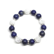 こちらは、ラピスラズリとクラック水晶を組み合わせたパワーストーンブレスレットです。間にはロンデルを挟み高級感あるデザインに仕上げております。石大きさは12mm玉を使用して内周 約18cmです。気になる方は是非この機会にどうぞ。