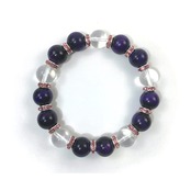 こちらは、パープルタイガーアイと水晶を組み合わせたパワーストーンブレスレットです。間にはロンデルを挟み高級感あるデザインに仕上げております。石大きさは12mm玉を使用して内周約18cmです。気になる方は是非この機会にどうぞ。