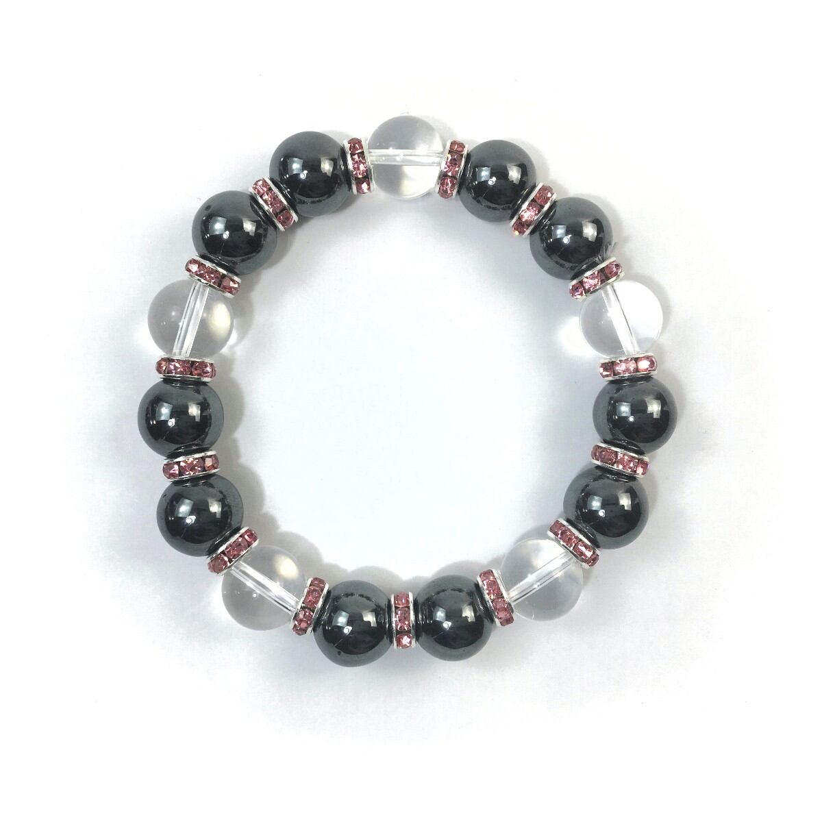 ヘマタイト&水晶 パワーストーン ブレスレット 天然石 12mm (ピンク)メンズ・レディース 男性・女性 数珠ブレス 開運 ☆
