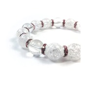 こちらは、クラック水晶と水晶を組み合わせたパワーストーンブレスレットです。間にはロンデルを挟み高級感あるデザインに仕上げております。石大きさは12mm玉を使用して内周約18cmです。気になる方は是非この機会にどうぞ。