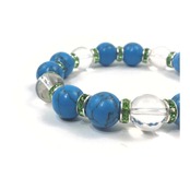こちらは、ターコイズと水晶を組み合わせたパワーストーンブレスレットです。間にはロンデルを挟み高級感あるデザインに仕上げております。石大きさは12mm玉を使用して内周約18cmです。気になる方は是非この機会にどうぞ。