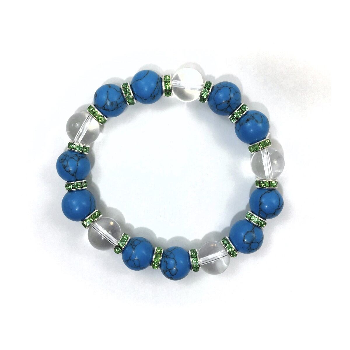 ターコイズ&水晶 パワーストーン ブレスレット 12mm (グリーン)メンズ・レディース 男性・女性 数珠ブレス 開運 ☆
