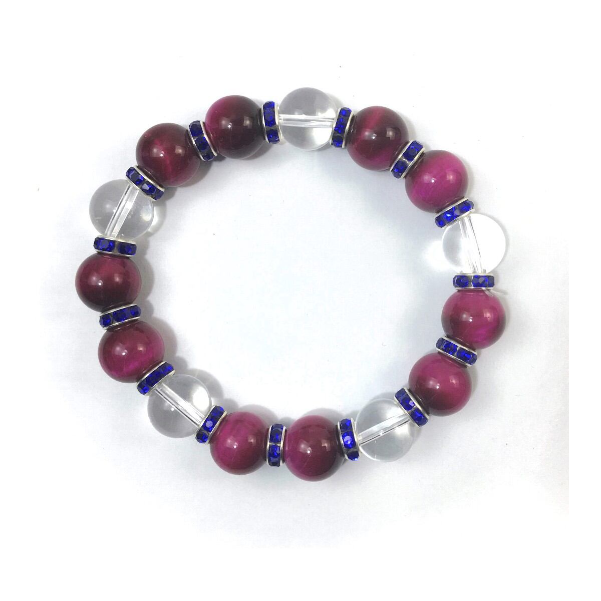 ピンクタイガーアイ&水晶 パワーストーン ブレスレット 12mm (ダークブルー)メンズ・レディース 男性・女性 数珠ブレス 開運 ☆