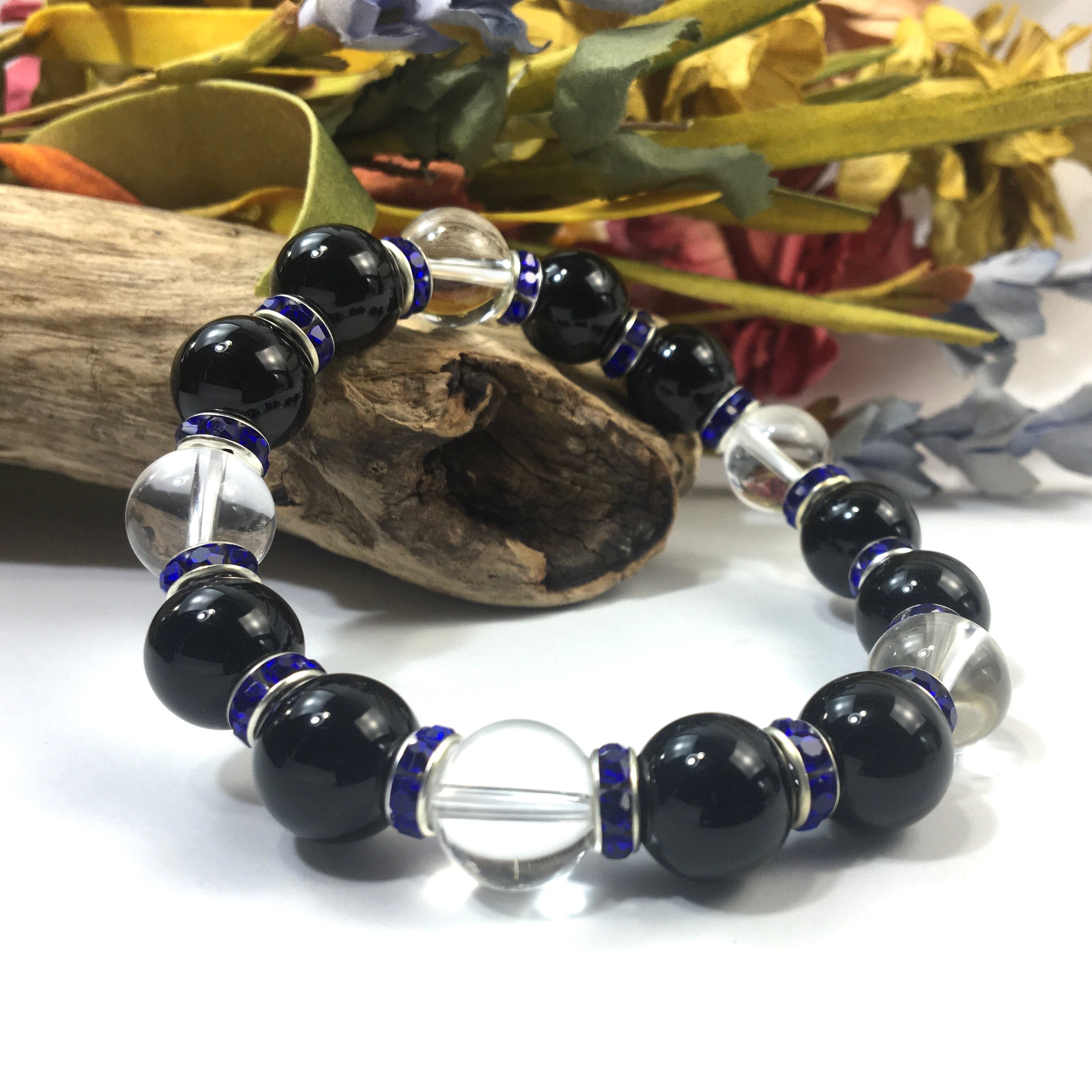 オニキス&水晶 パワーストーン ブレスレット 天然石12mm (ダークブルー)メンズ・レディース 男性・女性 数珠ブレス 開運 ☆