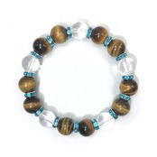 こちらは、タイガーアイとハウライトを組み合わせたパワーストーンブレスレットです。間にはロンデルを挟み高級感あるデザインに仕上げております。石大きさは12mm玉を使用して内周約18cmです。気になる方は是非この機会にどうぞ。