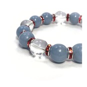 こちらは、エンジェライトと水晶を組み合わせたパワーストーンブレスレットです。間にはロンデルを挟み高級感あるデザインに仕上げております。石大きさは12mm玉を使用して内径約18cmです。気になる方は是非この機会にどうぞ。