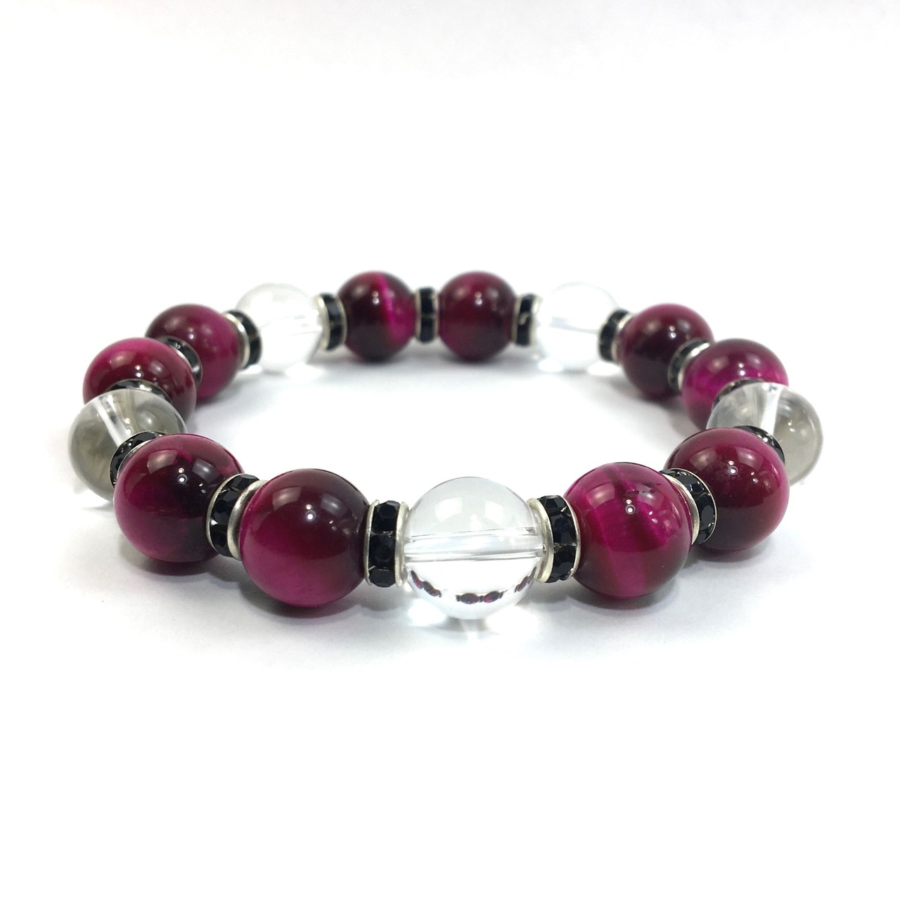 ピンクタイガーアイ&水晶 パワーストーン ブレスレット 12mm (ブラック)メンズ・レディース 男性・女性 数珠ブレス 開運 ☆