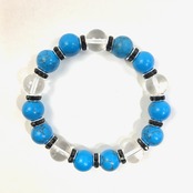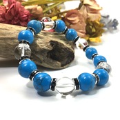 こちらは、ターコイズと水晶を組み合わせたパワーストーンブレスレットです。間にはロンデルを挟み高級感あるデザインに仕上げております。石大きさは12mm玉を使用して内周約18cmです。気になる方は是非この機会にどうぞ。