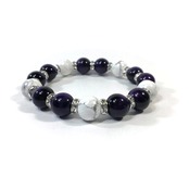 こちらは、パープルタイガーアイとハウライトを組み合わせたパワーストーンブレスレットです。間にはロンデルを挟み高級感あるデザインに仕上げております。石大きさは12mm玉を使用して内周約18cmです。気になる方は是非この機会にどうぞ。