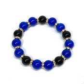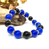 こちらは、12mm玉の青瑪瑙とオニキスを組み合わせたパワーストーンブレスレットです。間にはロンデルを挟み高級感あるデザインに仕上げております。石大きさは12mm玉を使用して内径約18cmです。(サイズ変更の場合は取引ナビにてご連絡をお願いします。) 数に限りがございますので気になる方はお早めにどうぞ。