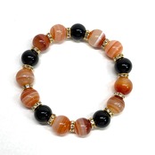 こちらは、12mm玉のカーネリアン・サードニクス(サードオニキス)とオニキスを組み合わせたパワーストーンブレスレットです。間にはロンデルを挟み高級感あるデザインに仕上げております。石大きさは12mm玉を使用して内周約18cmです。気になる方は是非この機会にどうぞ。