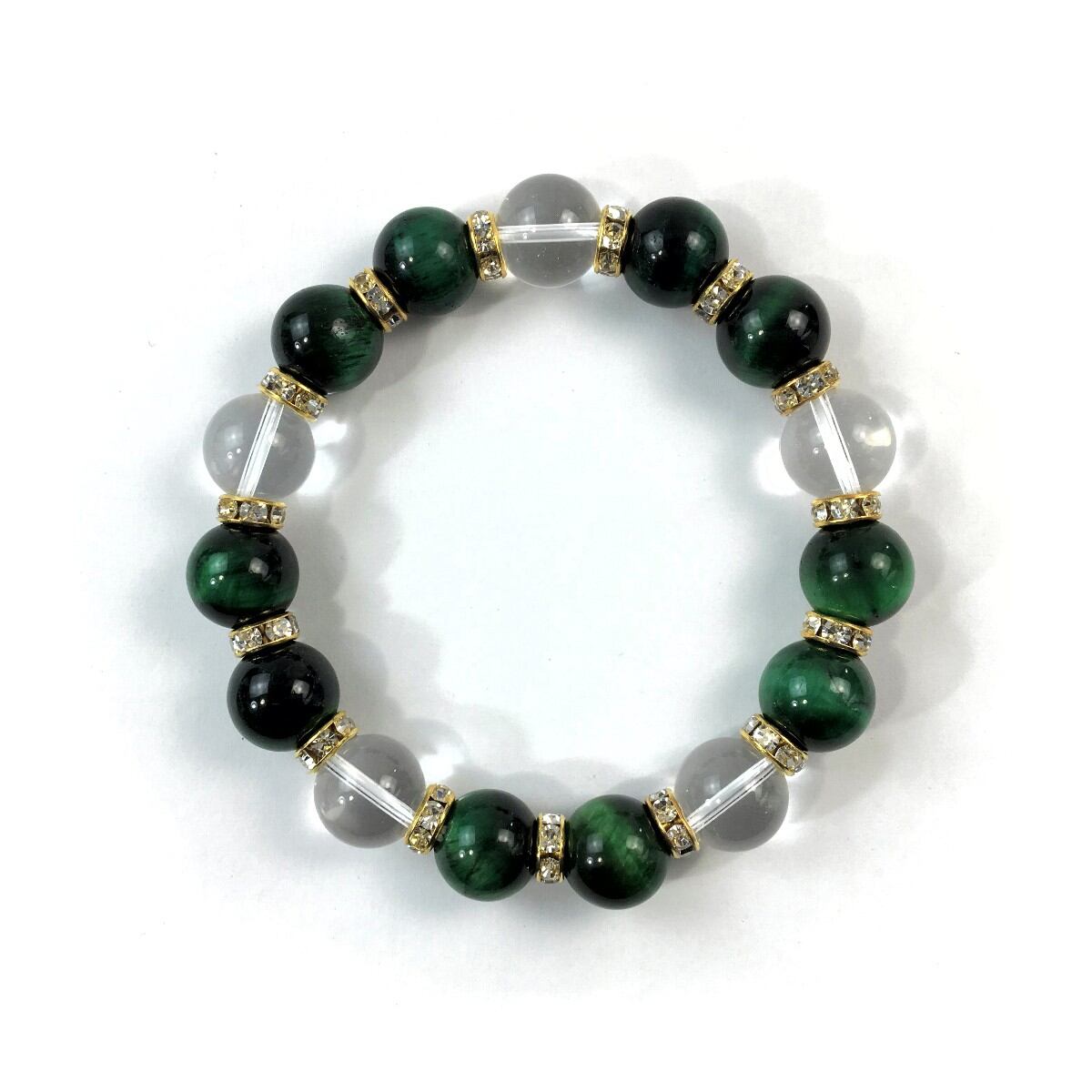 グリーンタイガーアイ&水晶 パワーストーン ブレスレット 12mm (ゴールド)メンズ・レディース 男性・女性 数珠ブレス 開運 ☆