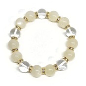 こちらは、12mm玉のムーンストーンと水晶を組み合わせたパワーストーンブレスレットです。間にはロンデルを挟み高級感あるデザインに仕上げております。石大きさは12mm玉を使用して内周約18cmです。気になる方は是非この機会にどうぞ。
