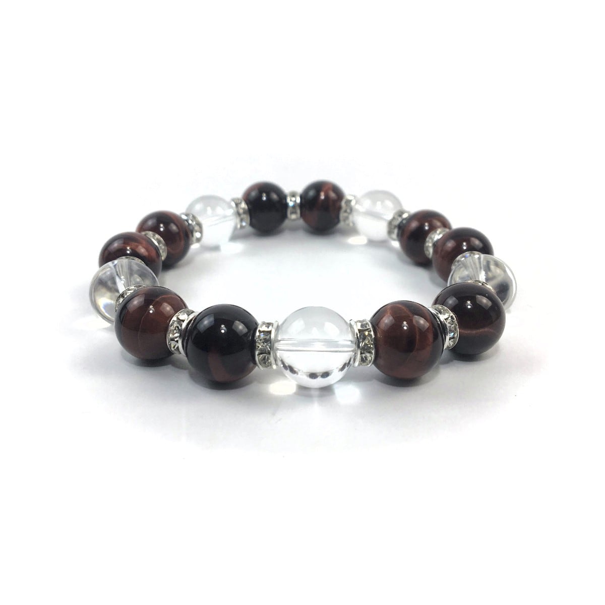 レッドタイガーアイ&水晶 パワーストーン ブレスレット 12mm (シルバー)メンズ・レディース 男性・女性 数珠ブレス 開運 ☆