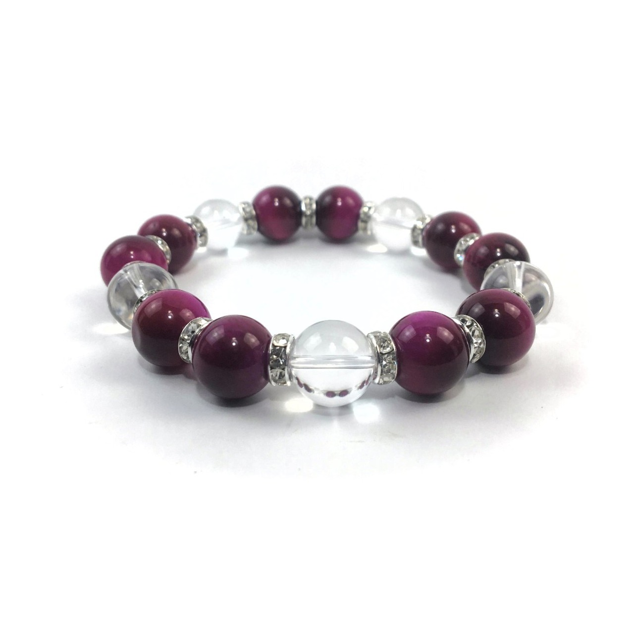ピンクタイガーアイ&水晶 パワーストーン ブレスレット 12mm (シルバー)メンズ・レディース 男性・女性 数珠ブレス 開運 ☆