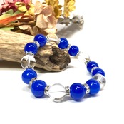 こちらは、10mm玉の青瑪瑙と水晶を組み合わせたパワーストーンブレスレットです。間にはロンデルを挟み高級感あるデザインに仕上げております。石大きさは12mm玉を使用して内径約18cmです。数に限りがございますので気になる方はお早めにどうぞ。