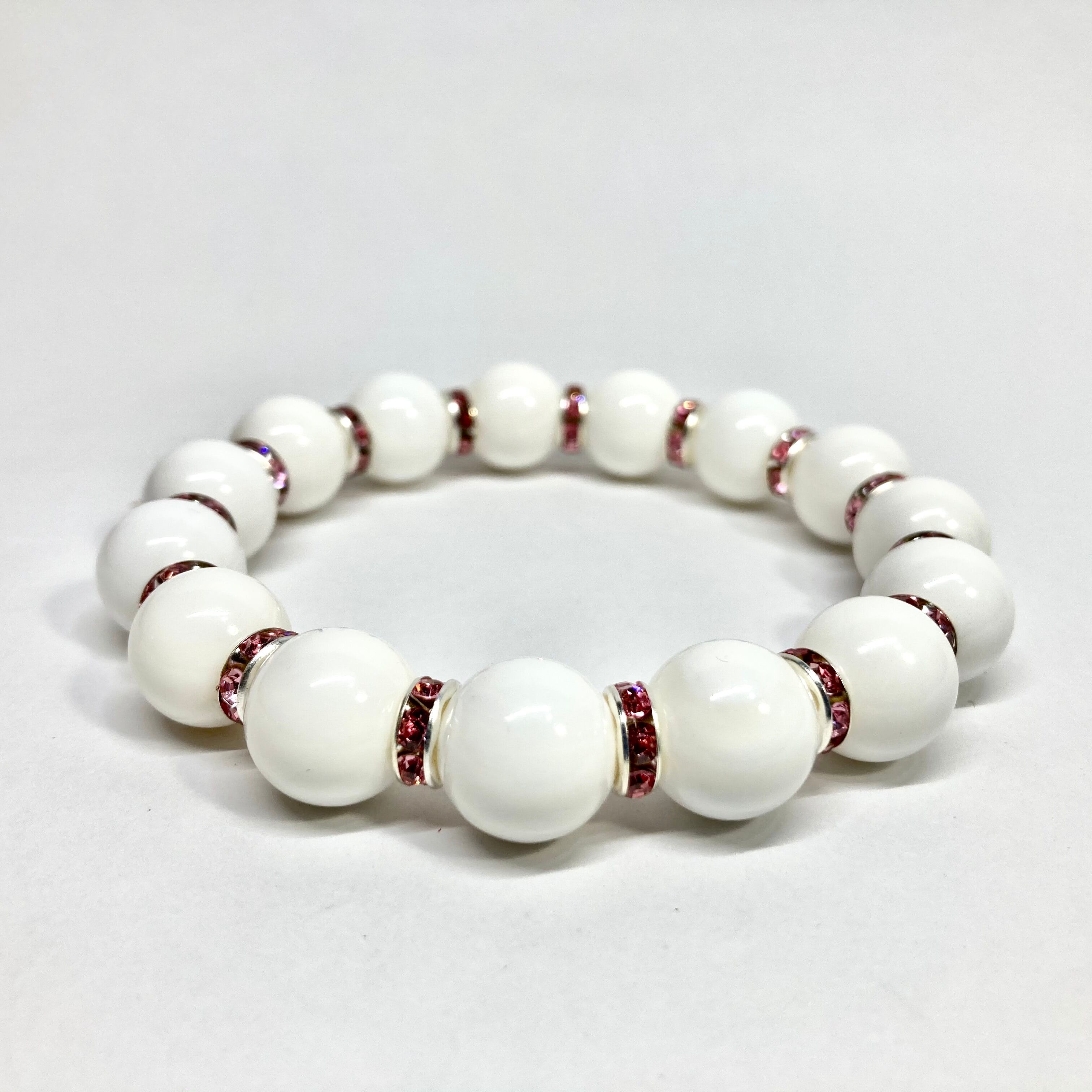 ホワイトオニキス パワーストーン ブレスレット 12mm 天然石ブレス (ピンク)メンズ・レディース 男性・女性 数珠ブレス 開運 ☆