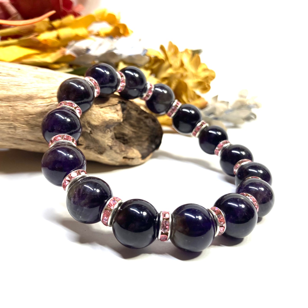 アメジスト パワーストーン ブレスレット 12mm 天然石ブレス (ピンク)メンズ・レディース 男性・女性 数珠ブレス 開運 ☆