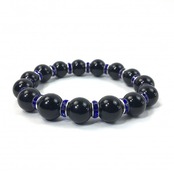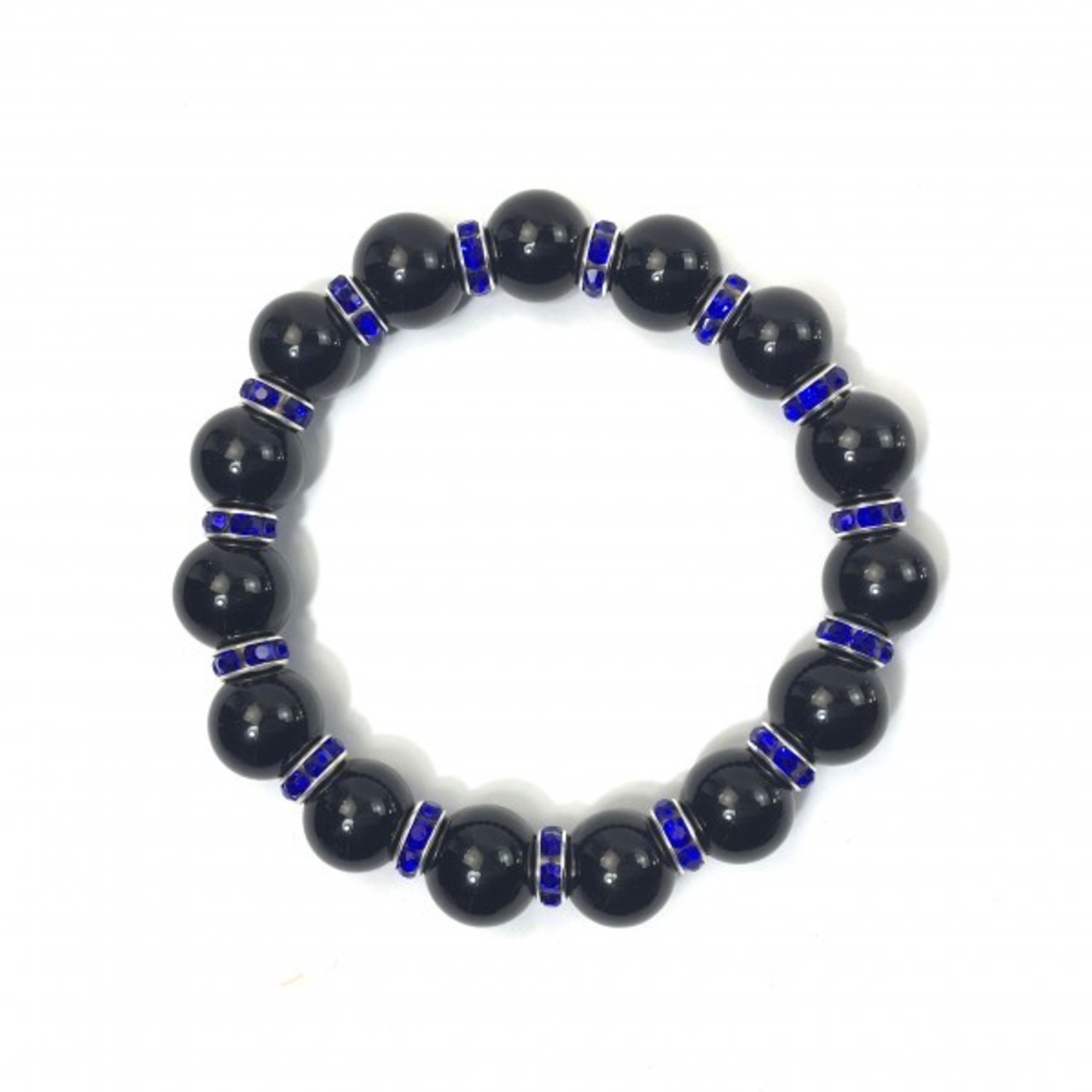 こちらは、12mm玉のオニキスを使用した天然石ブレスレットです。石との間にはロンデルを挟み高級感を演出しています。シンプルなデザインですのでどんなコーディネートとも合わせ易いブレスレットです。石大きさは12mm玉です。内周約18cmです。気になる方は是非この機会にどうぞ。