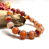 こちらは、12mm玉のカーネリアン・サードニクス(サードオニキス) を使用したパワーストーンブレスレットです。間にはロンデルを挟み高級感を演出しております。男女問わずどんなコーディネートとも合わせ易いブレスレットです。サイズは内周約18cmです。 数に限りがございますので気になる方はお早めにどうぞ。