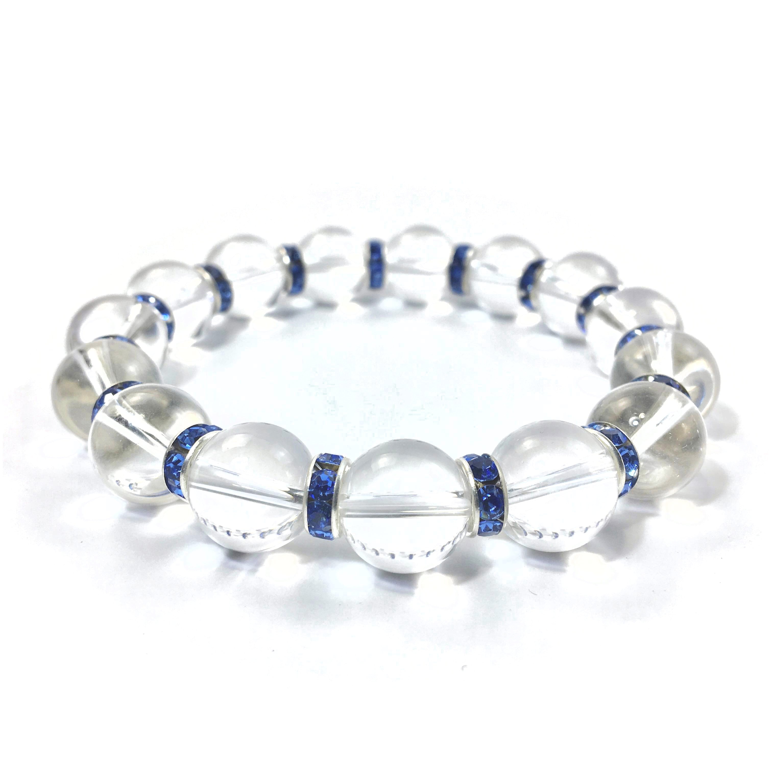 パワーストーン ブレスレット 水晶 12mm 天然石ブレス (ブルー)メンズ・レディース 男性・女性 数珠ブレス 開運 ☆