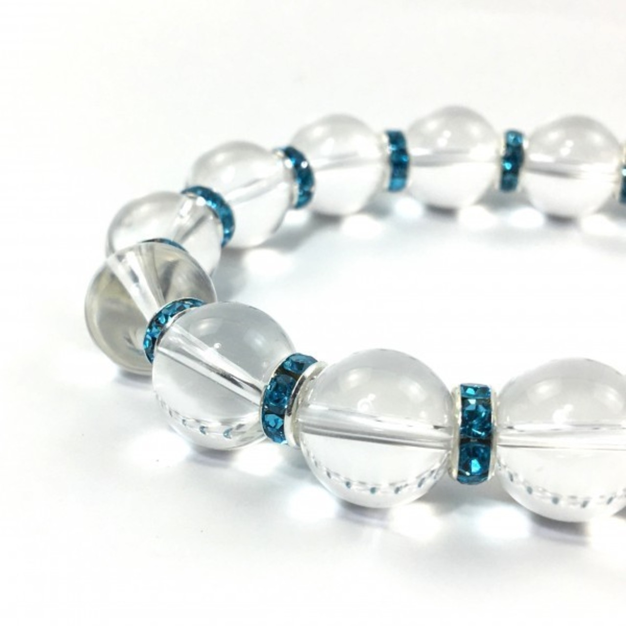 こちらは、12mm玉の水晶を使用した天然石ブレスレットです。石との間にはロンデルを挟み高級感を演出しています。シンプルなデザインですのでどんなコーディネートとも合わせ易いブレスレットです。石大きさは12mm玉です。内周約18cmです。気になる方は是非この機会にどうぞ。