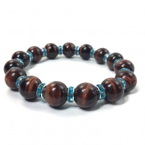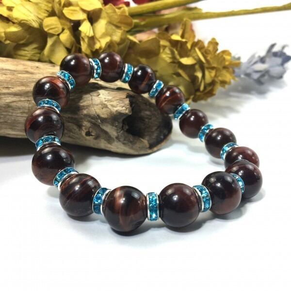 パワーストーン ブレスレット レッドタイガーアイ 12mm 天然石ブレス (ライトブルー)メンズ・レディース 男性・女性 数珠ブレス 開運 ☆