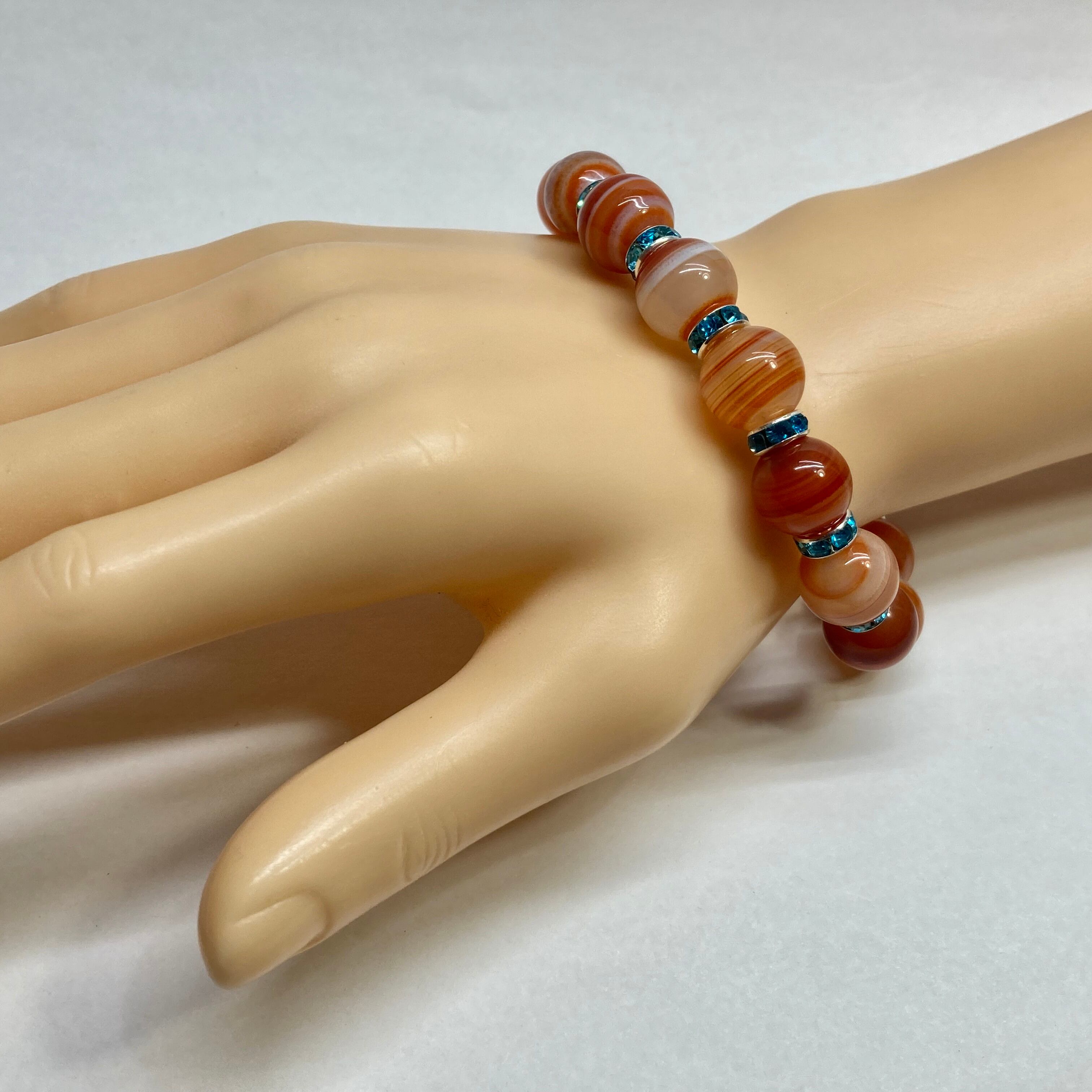 カーネリアン・サードニクス パワーストーン ブレスレット 12mm (ライトブルー)メンズ・レディース 男性・女性 数珠ブレス 開運 ☆