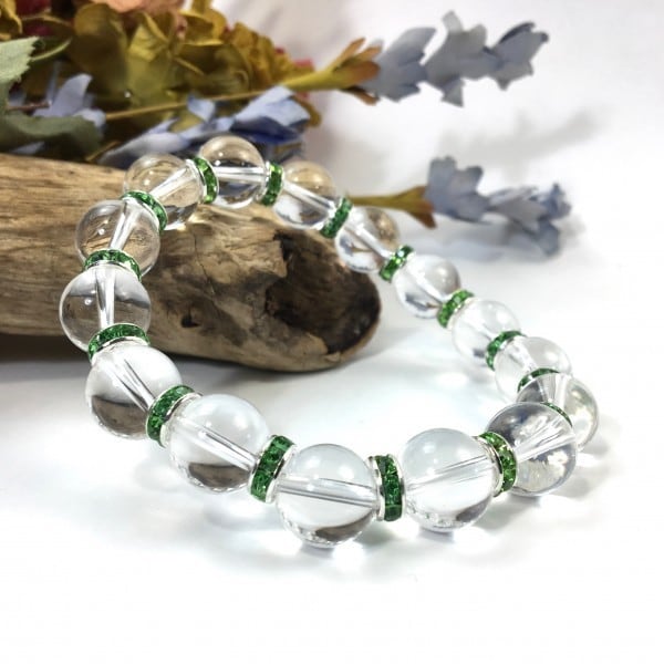 パワーストーン ブレスレット 水晶 12mm 天然石ブレス (グリーン)メンズ・レディース 男性・女性 数珠ブレス 開運 ☆