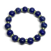 こちらは、12mm玉のラピスラズリを使用した天然石ブレスレットです。石との間にはロンデルを挟み高級感を演出しています。シンプルなデザインですのでどんなコーディネートとも合わせ易いブレスレットです。石大きさは12mm玉です。内周約18cmです。数に限りがございますので気になる方はお早めにどうぞ。