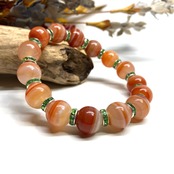 こちらは、12mm玉のカーネリアン・サードニクス(サードオニキス) を使用したパワーストーンブレスレットです。間にはロンデルを挟み高級感を演出しております。男女問わずどんなコーディネートとも合わせ易いブレスレットです。サイズは内周約18cmです。 数に限りがございますので気になる方はお早めにどうぞ。