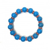 こちらは、12mm玉のターコイズを使用したブレスレットです。石との間にはロンデルを挟み高級感を演出しています。シンプルなデザインですのでどんなコーディネートとも合わせ易いブレスレットです。石大きさは12mm玉です。内周約18cmです。気になる方は是非この機会にどうぞ。