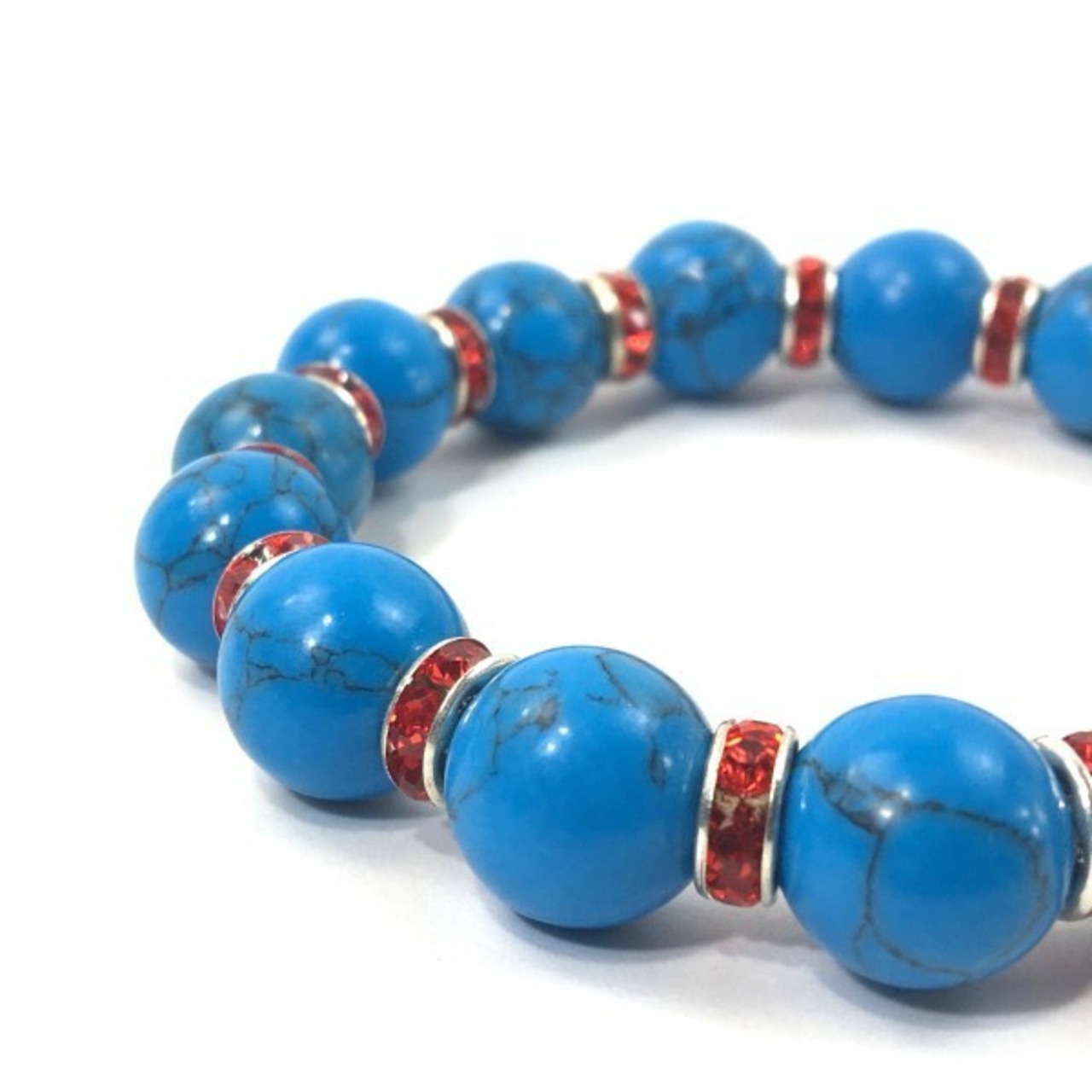 パワーストーン ブレスレット ターコイズ 12mm (レッド)メンズ・レディース 男性・女性 数珠ブレス 開運 ☆