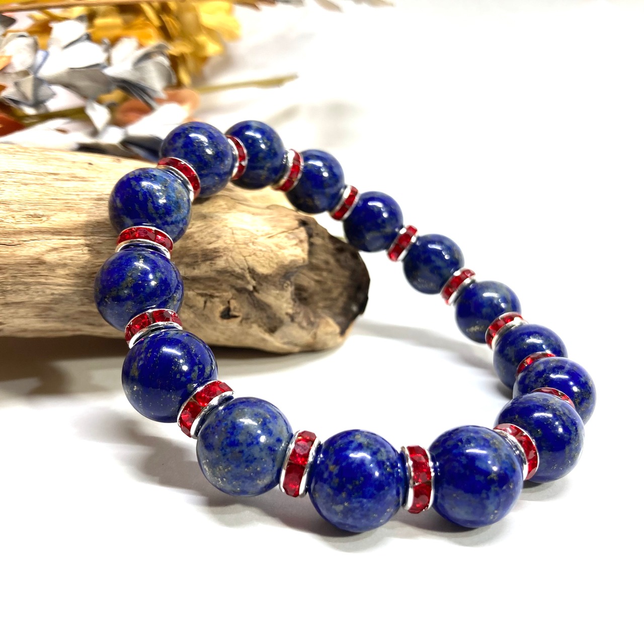 ラピスラズリ パワーストーン ブレスレット 12mm 天然石ブレス (レッド)メンズ・レディース 男性・女性 数珠ブレス 開運 ☆