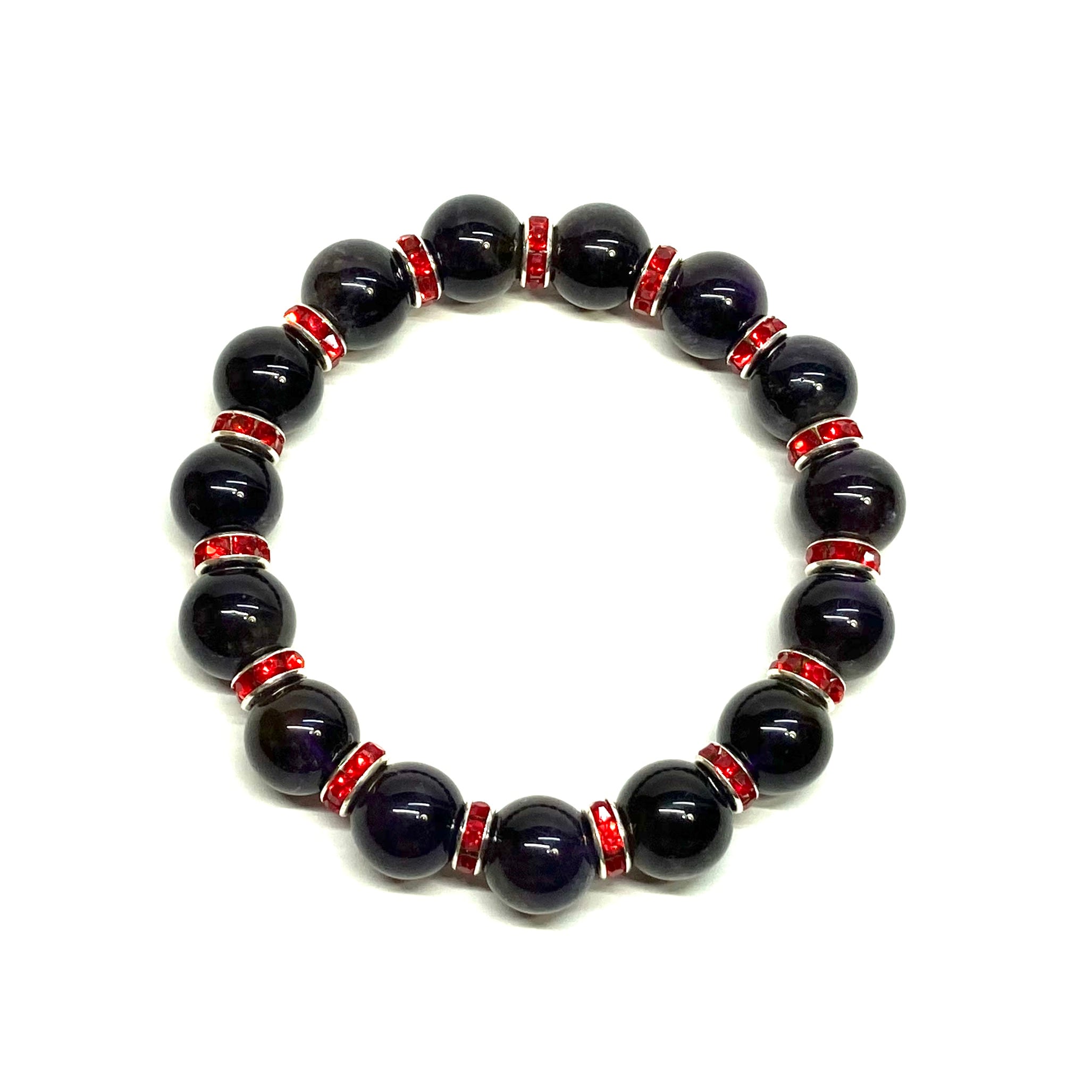 アメジスト パワーストーン ブレスレット 12mm 天然石ブレス (レッド)メンズ・レディース 男性・女性 数珠ブレス 開運 ☆
