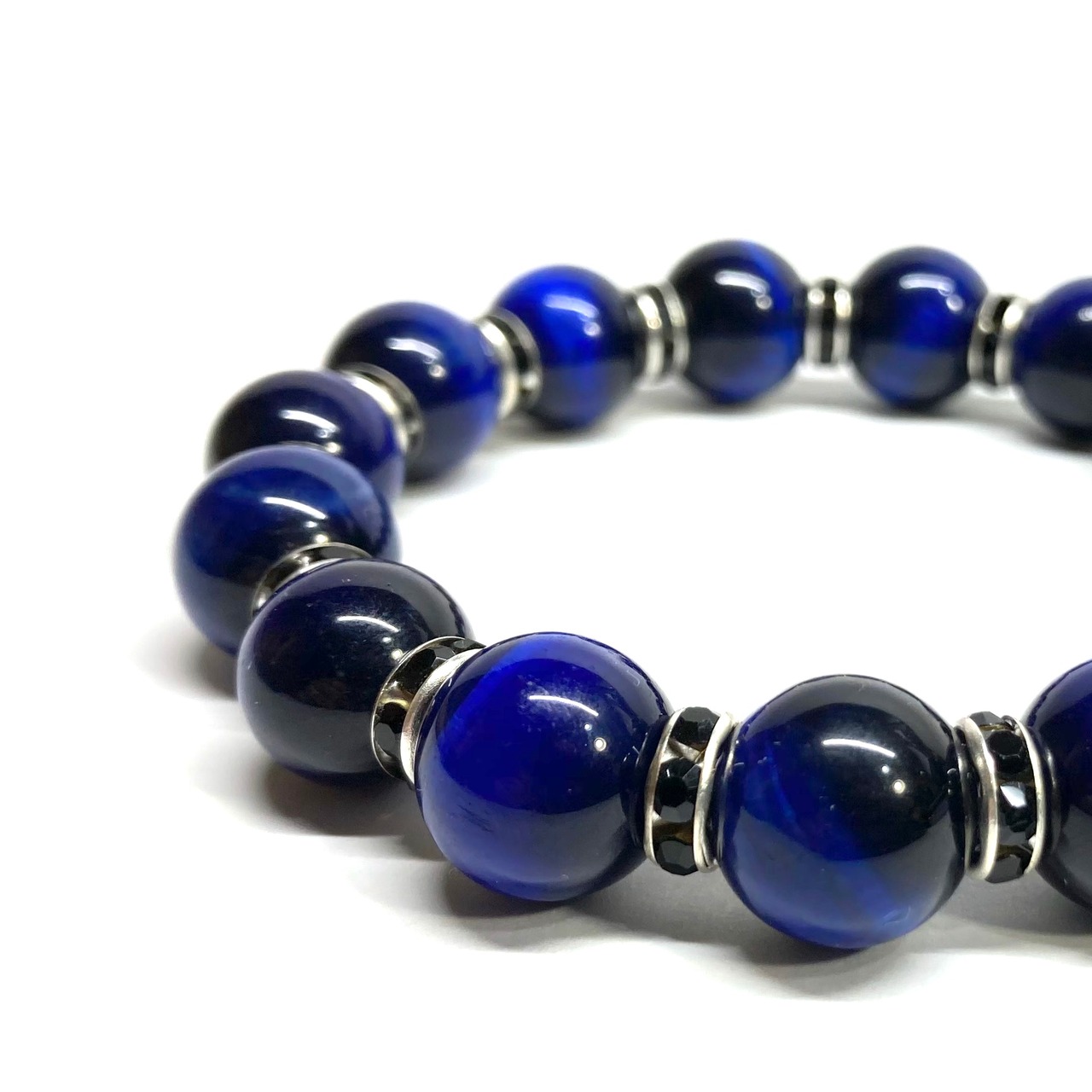 ブルータイガーアイ パワーストーン ブレスレット 12mm (ブラック)メンズ・レディース 男性・女性 数珠ブレス 開運 ☆