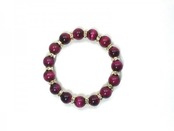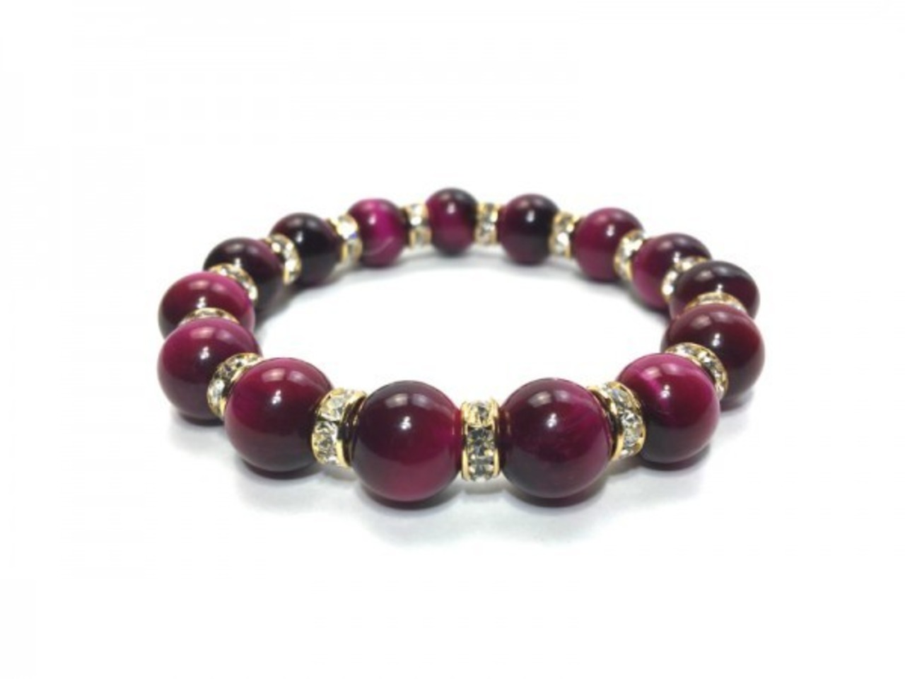 こちらは、12mm玉のピンクタイガーアイを使用したブレスレットです。石との間にはロンデルを挟み高級感を演出しています。シンプルなデザインですのでどんなコーディネートとも合わせ易いブレスレットです。石大きさは12mm玉です。内周約18cmです。気になる方は是非この機会にどうぞ。