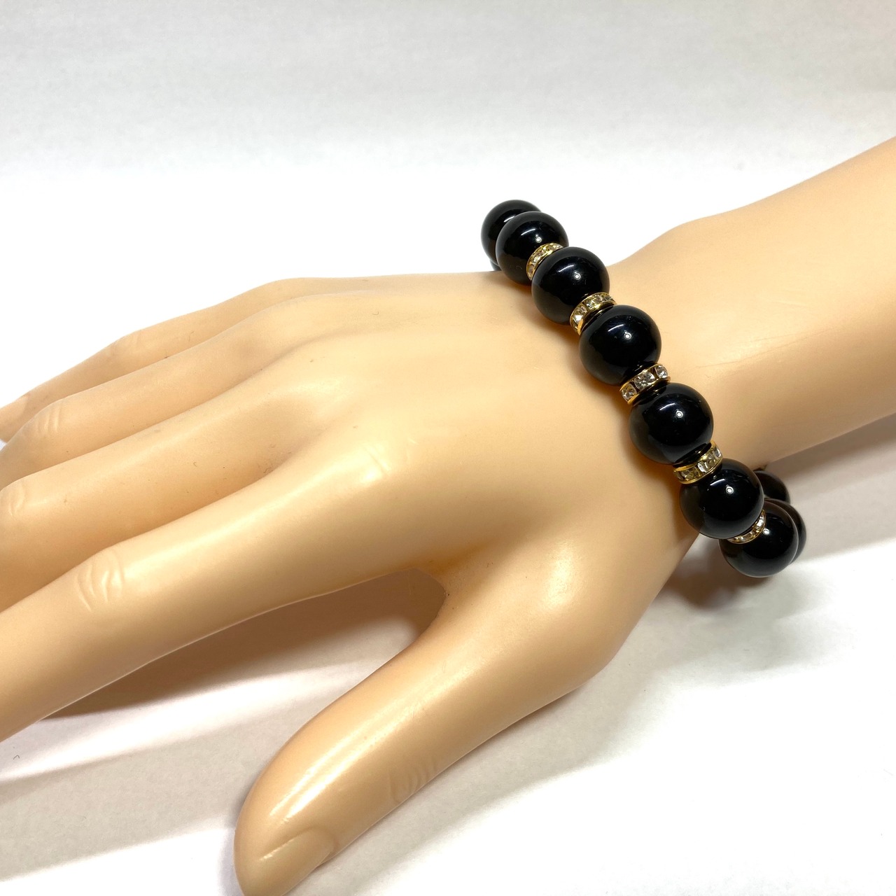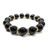 こちらは、10mm玉のモリオンを使用したパワーストーンブレスレットです。間にはロンデルを挟み高級感を演出しております。男女問わずどんなコーディネートとも合わせ易いブレスレットです。サイズは内周約18cmです。数に限りがございますので気になる方はお早めにどうぞ。