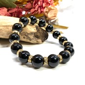 モリオン パワーストーン ブレスレット 12mm 天然石ブレス (ゴールド)メンズ・レディース 男性・女性 数珠ブレス 開運 ☆
