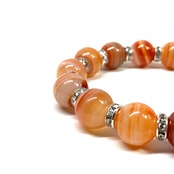 こちらは、12mm玉のカーネリアン・サードニクス(サードオニキス) を使用したパワーストーンブレスレットです。間にはロンデルを挟み高級感を演出しております。男女問わずどんなコーディネートとも合わせ易いブレスレットです。サイズは内周約18cmです。 数に限りがございますので気になる方はお早めにどうぞ。