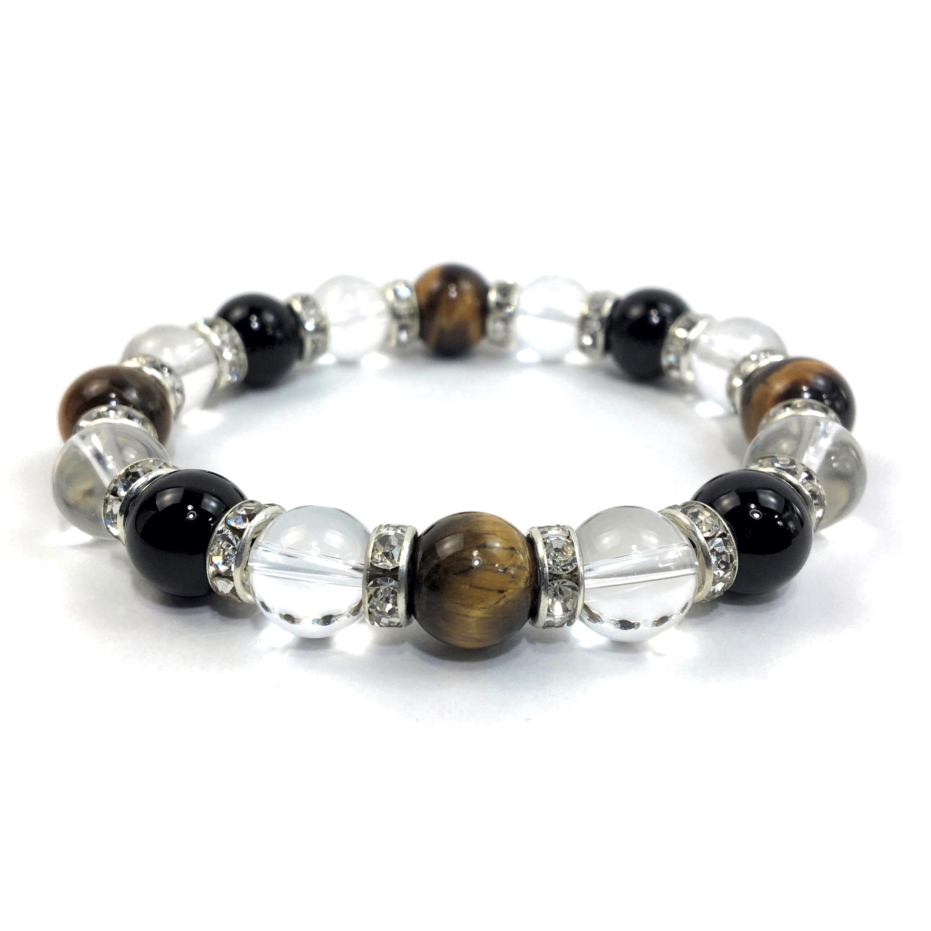 タイガーアイ×水晶×オニキス パワーストーン ブレスレット 10mm(シルバー)メンズ・レディース 男性・女性 数珠ブレス 開運 ☆