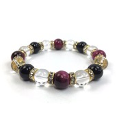 こちらは、ピンクタイガーアイと水晶とオニキスを組み合わせたブレスレットです。間にはロンデルを挟み高級感あるデザインに仕上がっています。石大きさは腕にも馴染みやすいように10mm玉で内周約16cmです。数に限りがございますので気になる方はお早めにどうぞ。