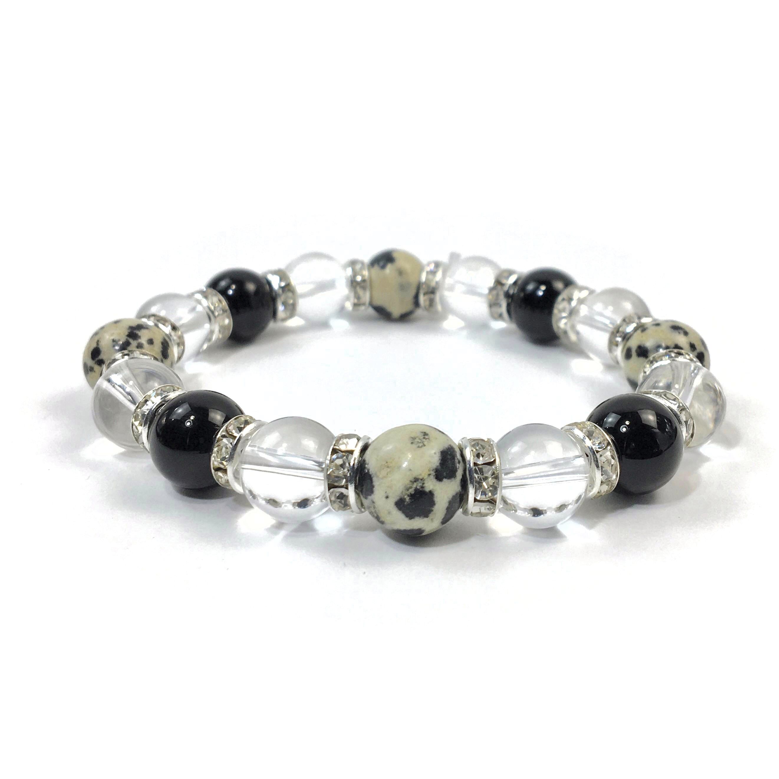 ダルメシアンジャスパー×水晶×オニキス パワーストーン ブレス10mm(シルバー)メンズ・レディース 男性・女性 数珠ブレス 開運 ☆