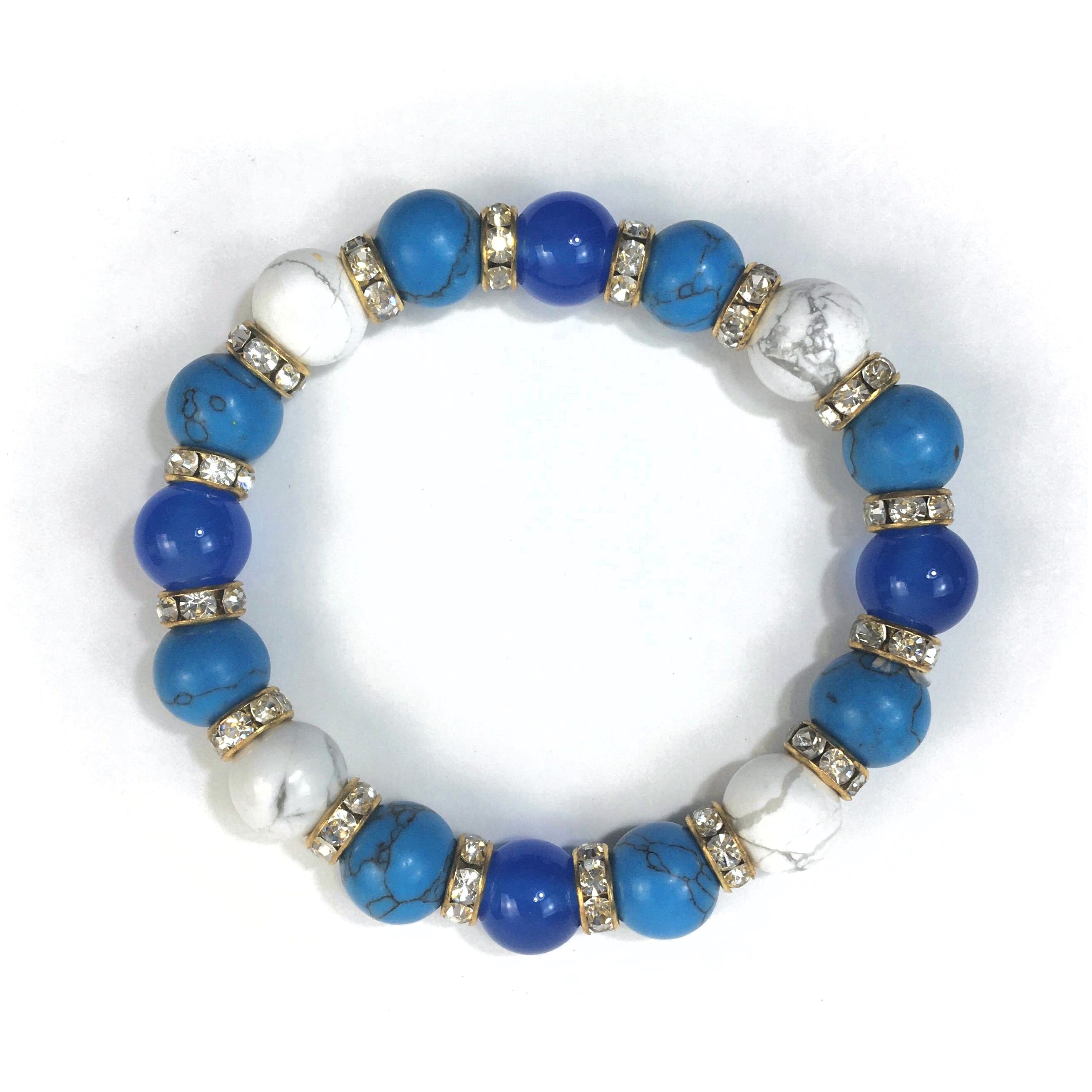 ブルーメノウ×ハウライト×ターコイズ パワーストーンブレス 10mm(ゴールド)メンズ・レディース 男性・女性 数珠ブレス 開運 ☆