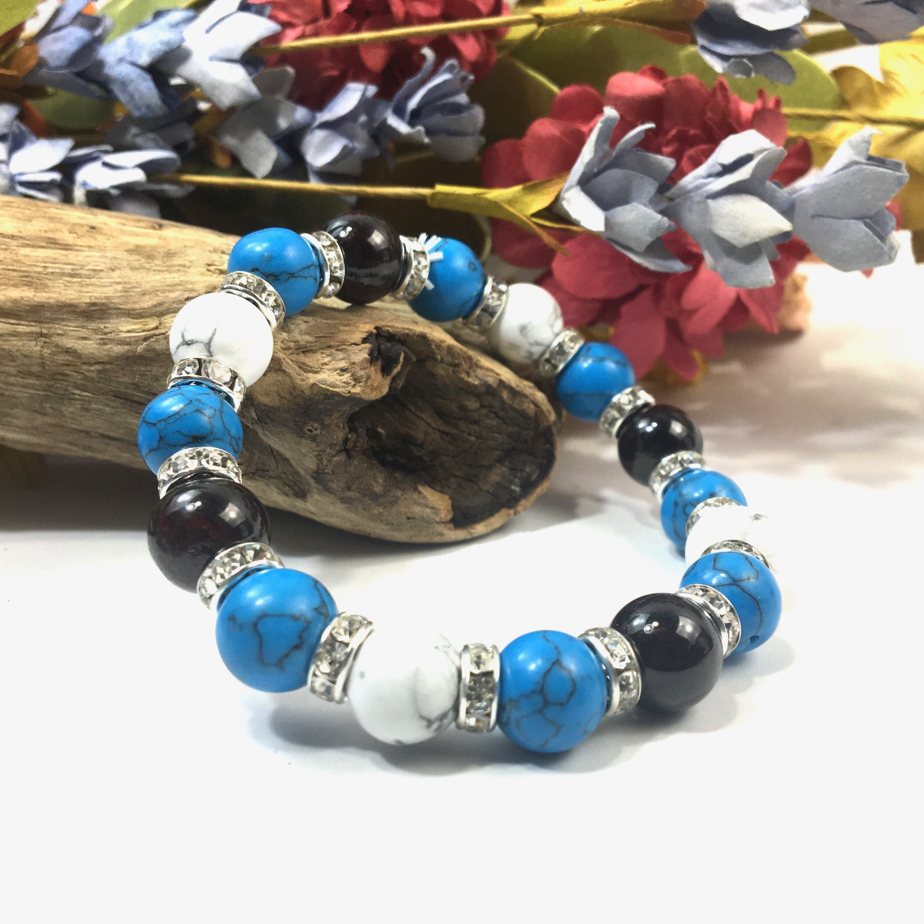 ガーネット×ハウライト×ターコイズ パワーストーンブレス 10mm(シルバー)メンズ・レディース 男性・女性 数珠ブレス 開運 ☆