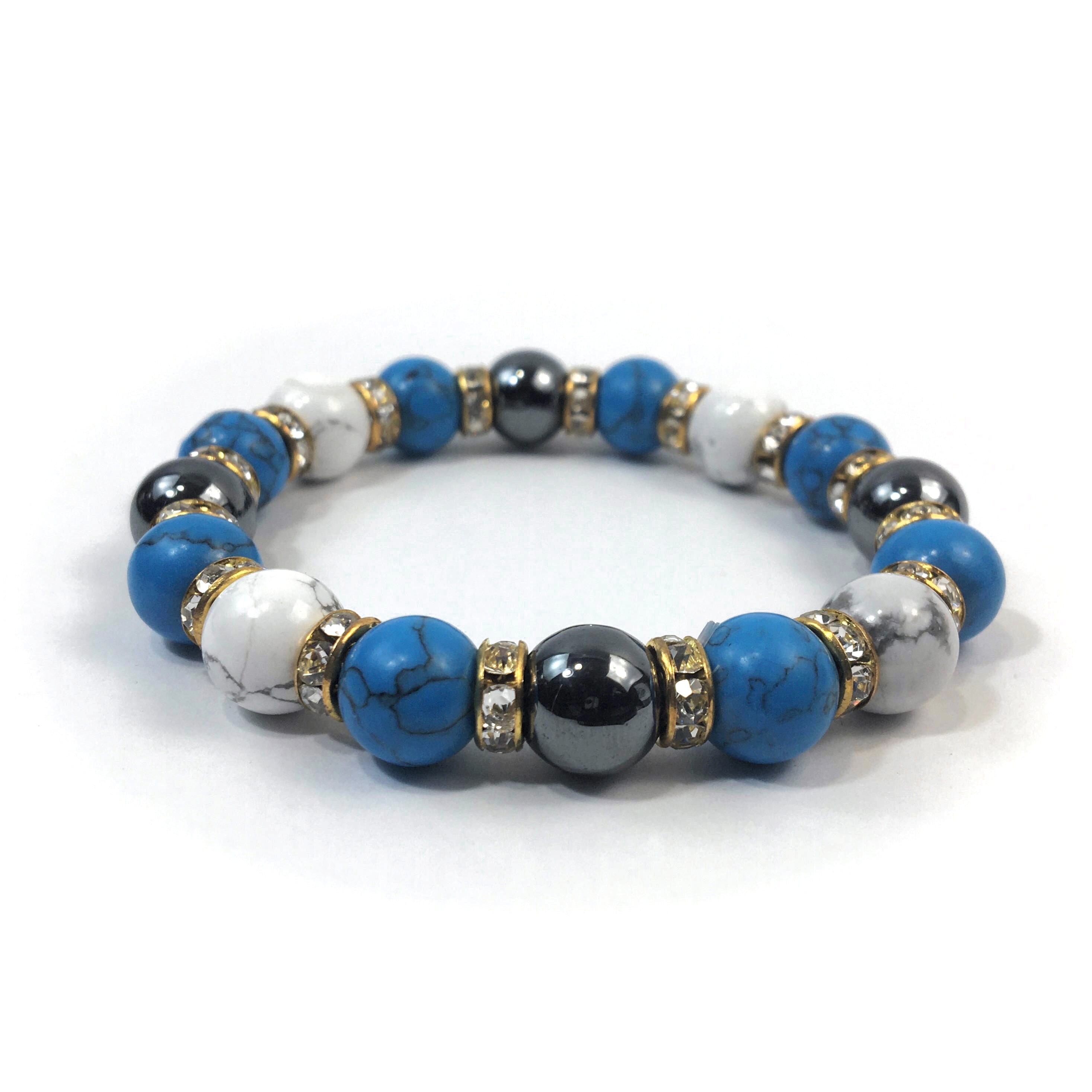 ヘマタイト×ハウライト×ターコイズ パワーストーンブレス 10mm(ゴールド)メンズ・レディース 男性・女性 数珠ブレス 開運 ☆