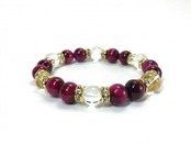 こちらは、ピンクタイガーアイと水晶を組み合わせたブレスレットです。間にはロンデルを挟み高級感あるデザインに仕上がっています。石大きさは腕にも馴染みやすいように10mm玉で内周約17cm(伸可能)です。数に限りがございますので気になる方はお早めにどうぞ。