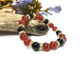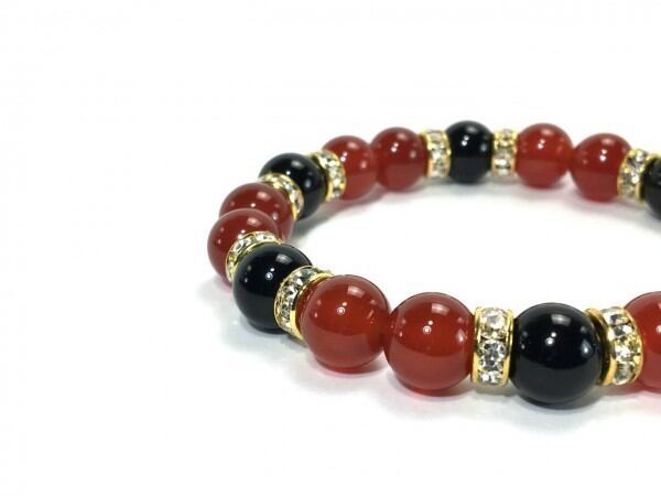 赤瑪瑙×オニキス パワーストーン ブレスレット 天然石 10mm(ゴールド)メンズ・レディース 男性・女性 数珠ブレス 開運 ☆