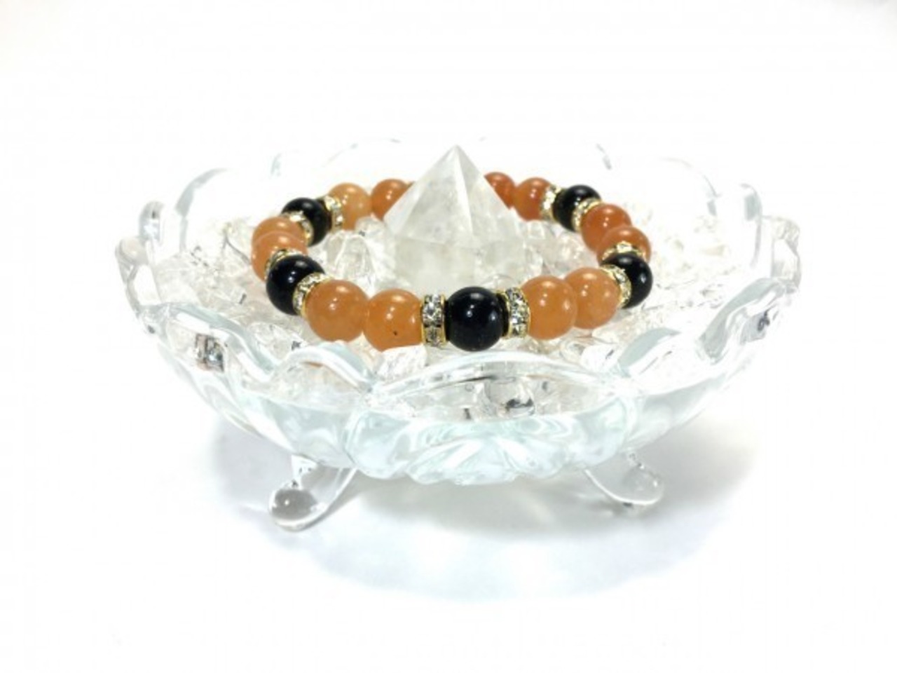 アベンチュリンと同様の力を持つと云われ安定と洞察力の石と言われ、身に付ける人にツキを呼びチャンスをもたらし、逆境を乗り越えるパワーを与えて、行動力と情熱をおこさせてくれます。